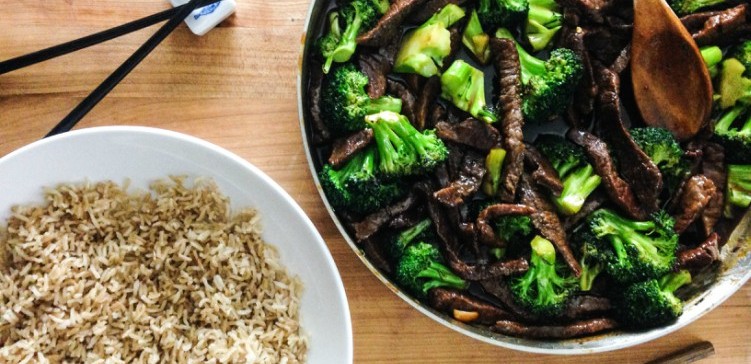 Cook until beef is evenly brown; Once that's done, transfer the steak to a baking sheet with a slotted spoon. Pour the sauce over steak, veggies, and rice, and use a large wooden spoon to mix everything together. In a bowl, mix together the soy sauce, cornstarch, sherry, brown sugar, ginger and garlic. Add beef to pan with broccoli.